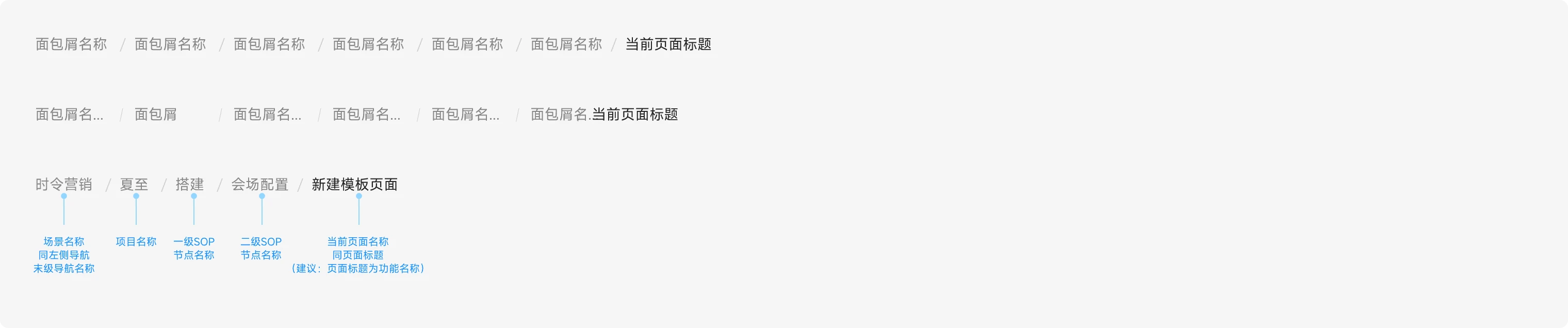 下钻页面>2时,面包屑可变化为下方样式,避免下钻层级过多时面包屑层级过多