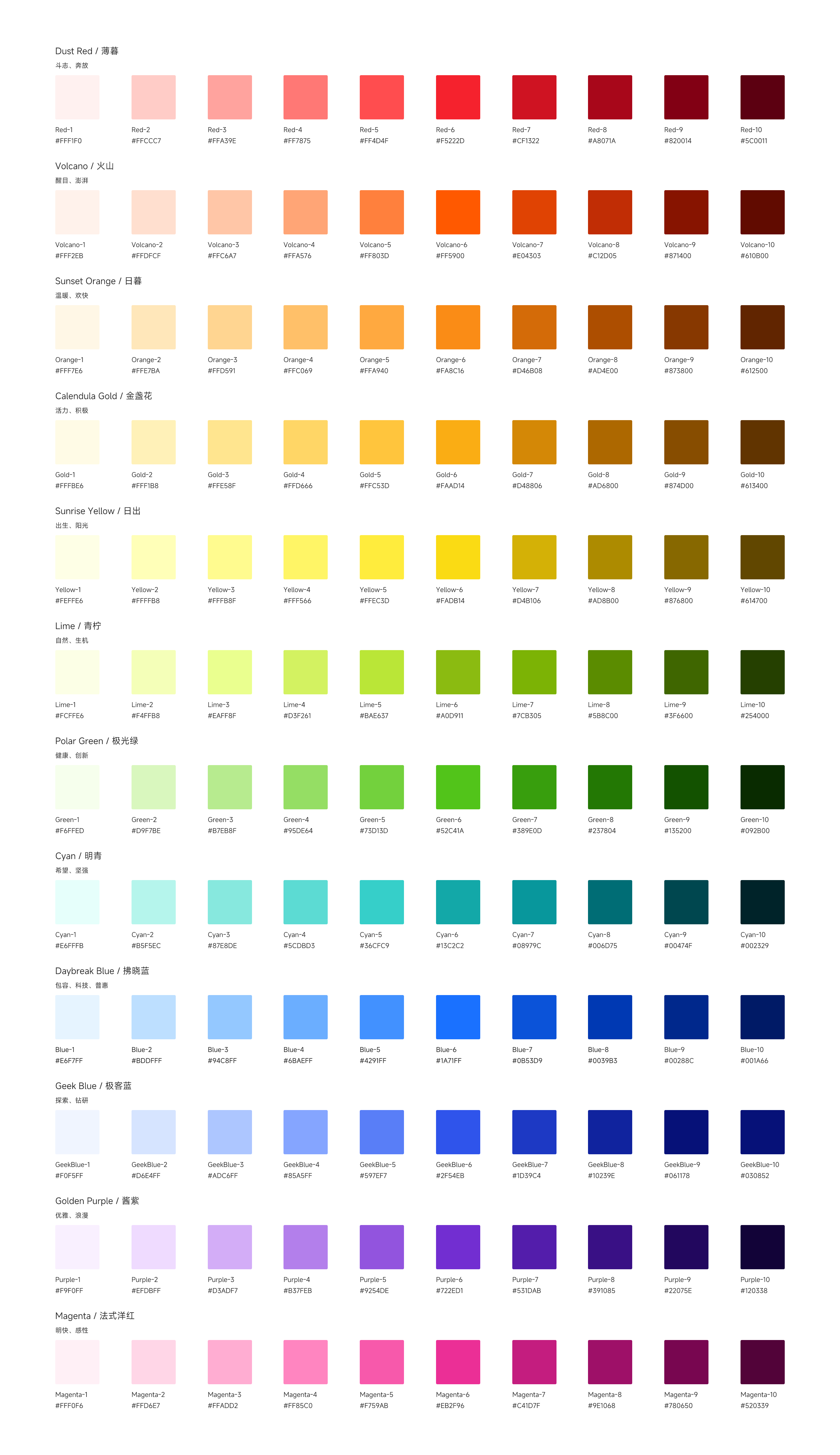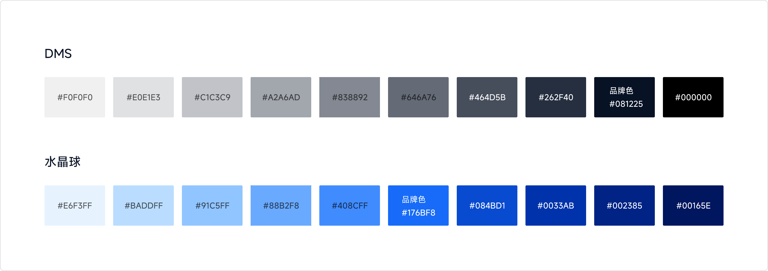 基于antd基础色板,融合“DMS”“水晶球”品牌色衍生出新的基础色板