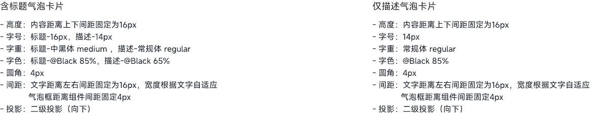 鼠标悬停、聚焦或点击在某个组件时,弹出的临时性气泡式的卡片浮层,能够承载一些额外内容和交互行为而不影响原页面。气泡卡片组件是气泡确认框实现的基础