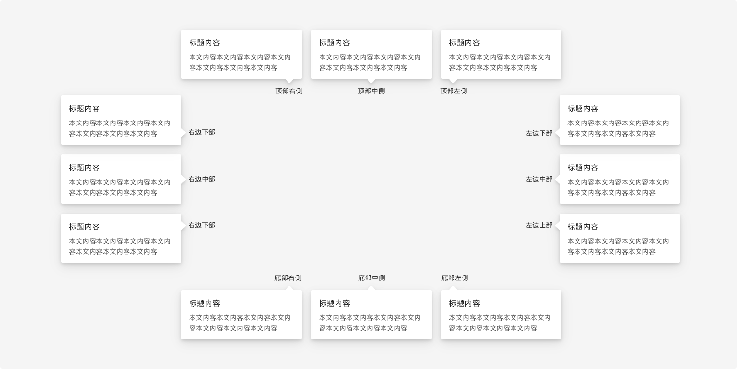 气泡提示共有12种箭头方向,其对齐方式根据实际显示内容选择合适的样式。