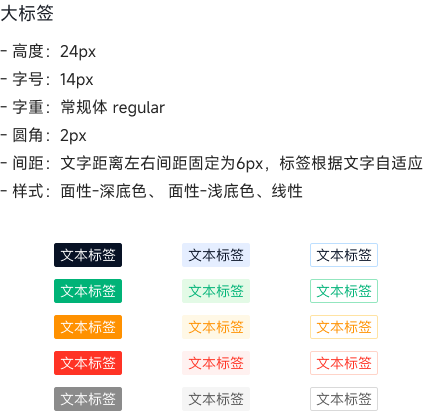 原则上标签颜色优先使用专有色板,如需有特殊需求,严格按照色彩规范的色阶号取色。