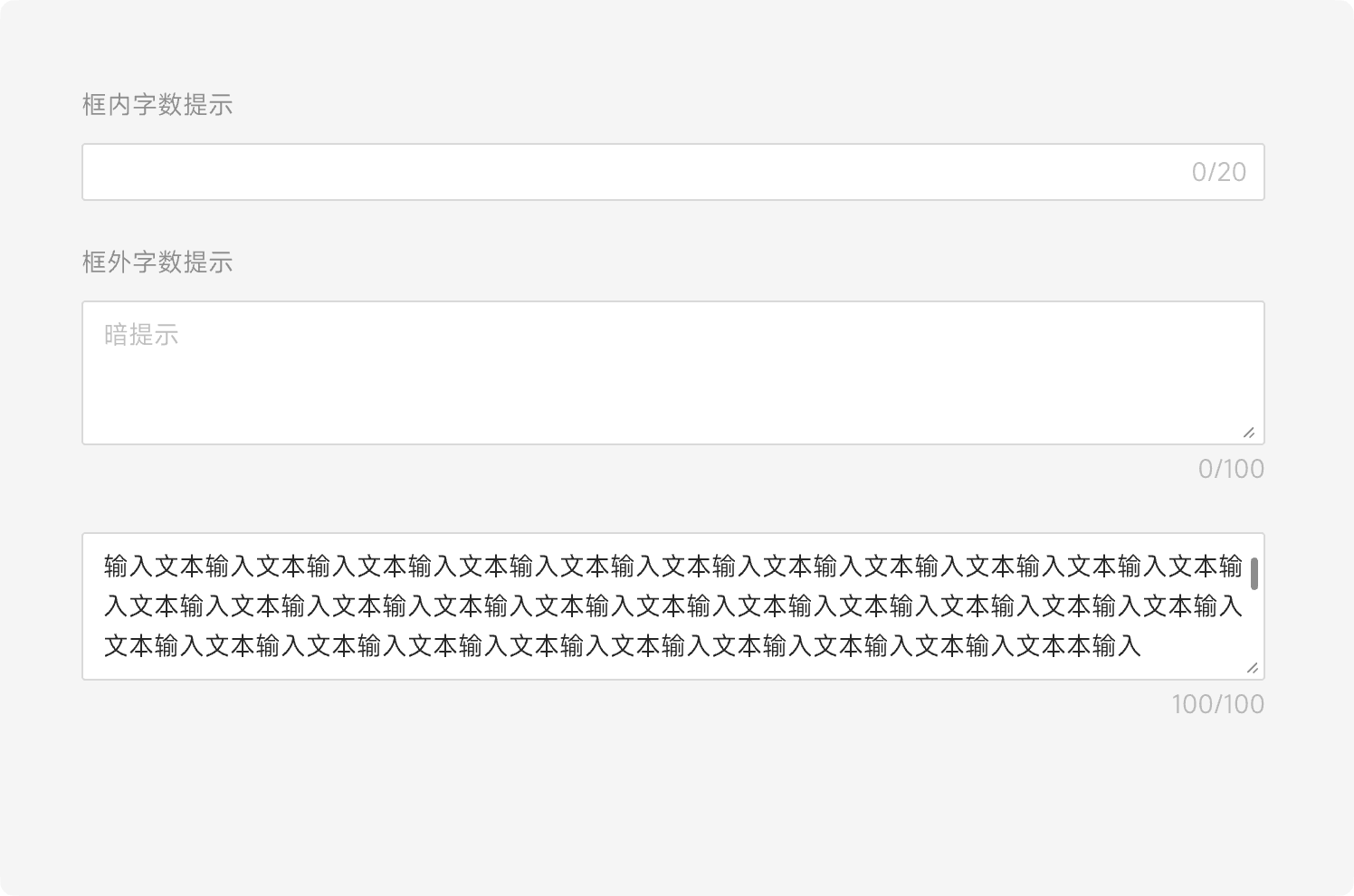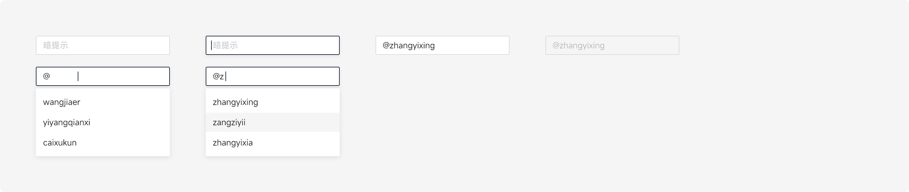 常规,激活,失焦,不可用,拉伸(输入框可拉伸),超出字数,提及,字数提示(非必选)