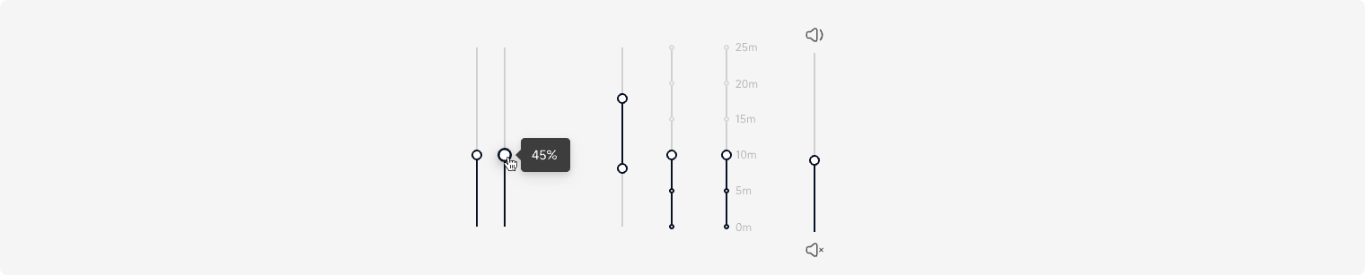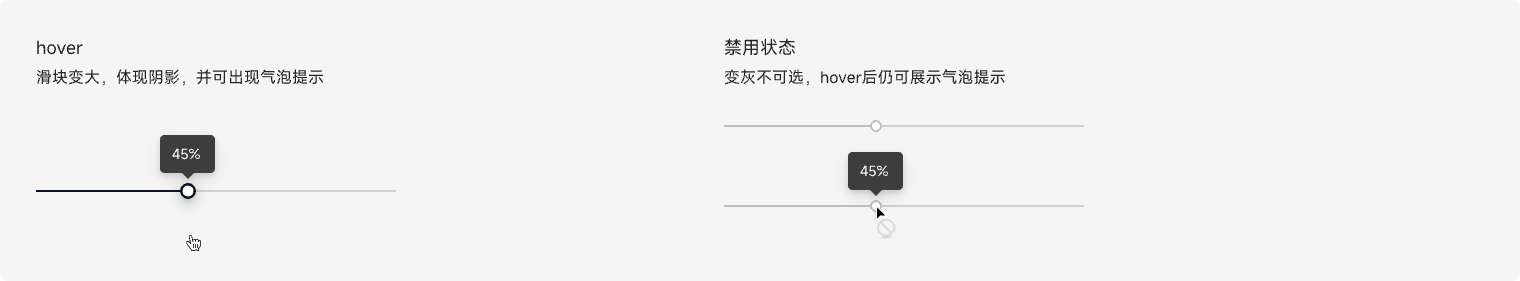 滑动型输入器,展示当前值和可选范围。用户在连续或间断的区间内,通过滑动来选择合适数值(一个数值或范围数值)的控件。