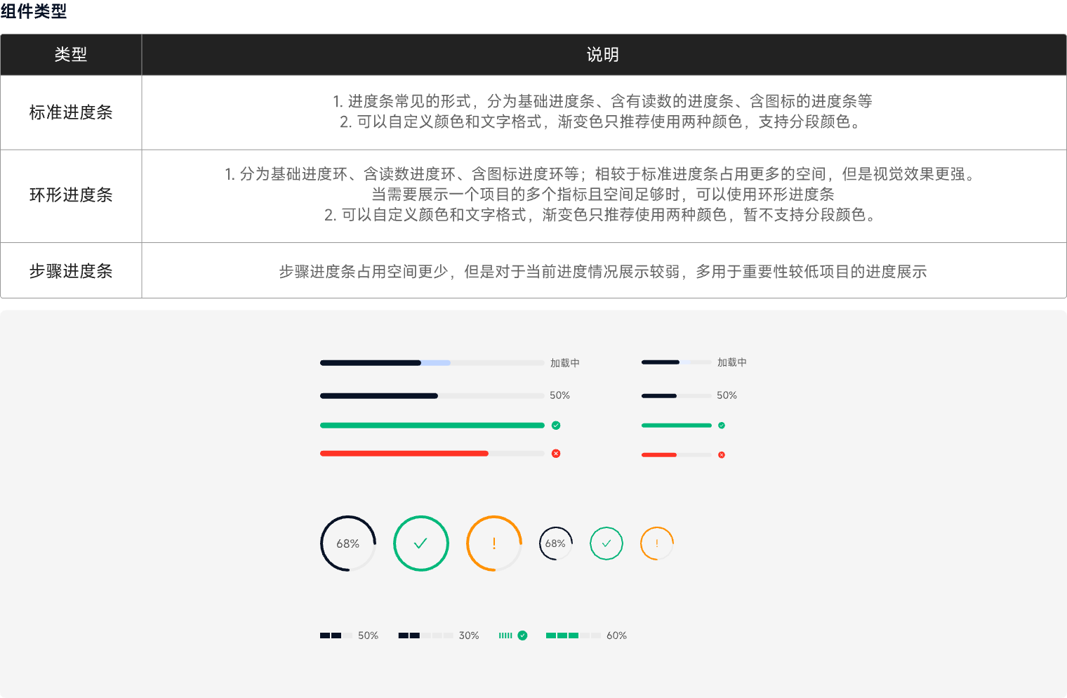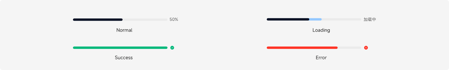 进度条根据交互行为的不同会触发不同的状态,具体状态见【组件状态】模块。