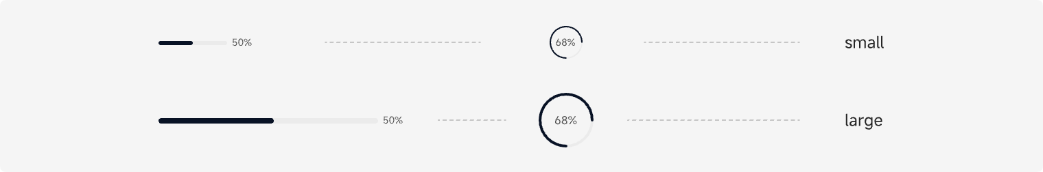进度条尺寸分为“small”、“large”两个常规尺寸,可以从大小、粗细等参数上作区分。