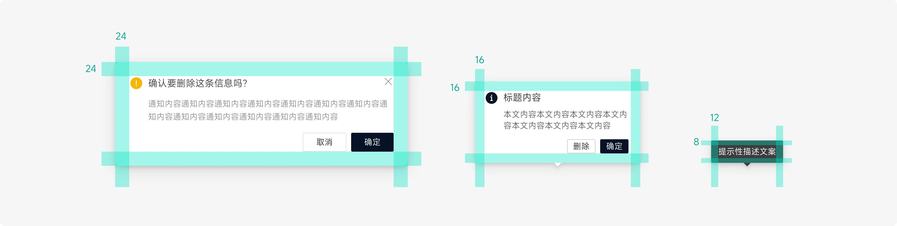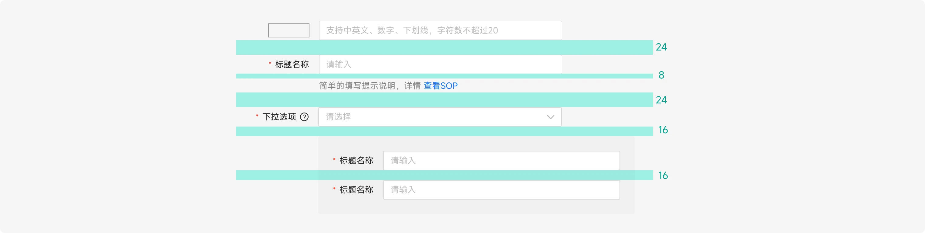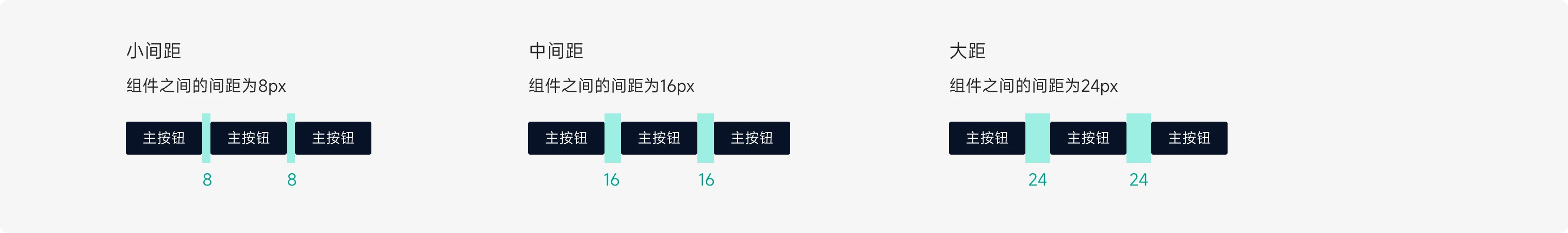 设置相邻组件的垂直距离,预设大 24px、中 16px、小 8px 三种间距,可支持自定义,建议按 8 的倍数设置。