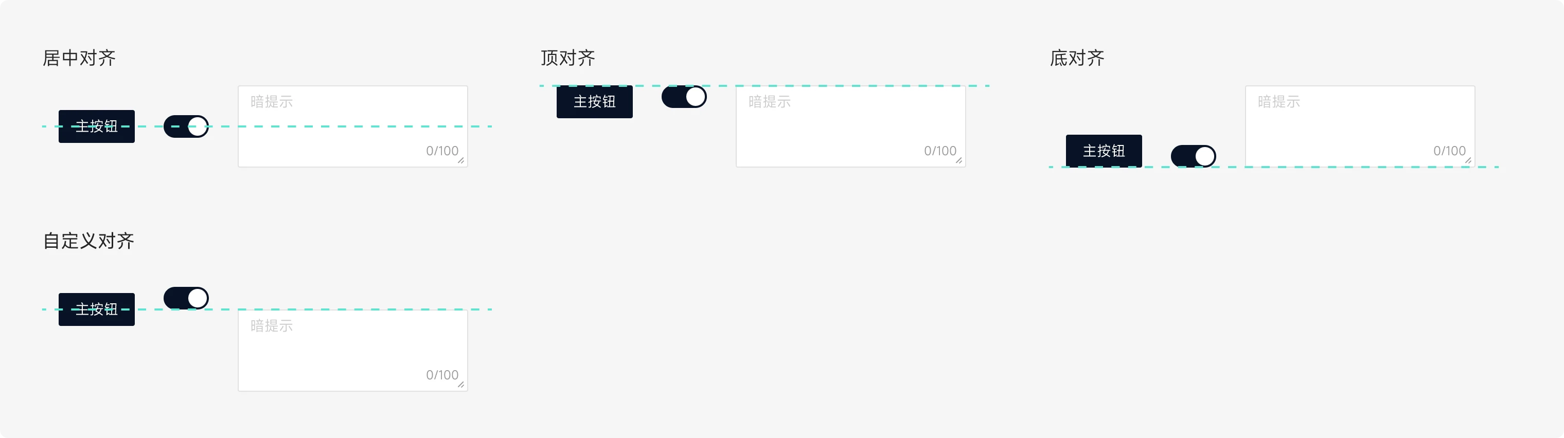 分为横向「居中对齐」「顶对齐」「底对齐」「自定义对齐」四种。