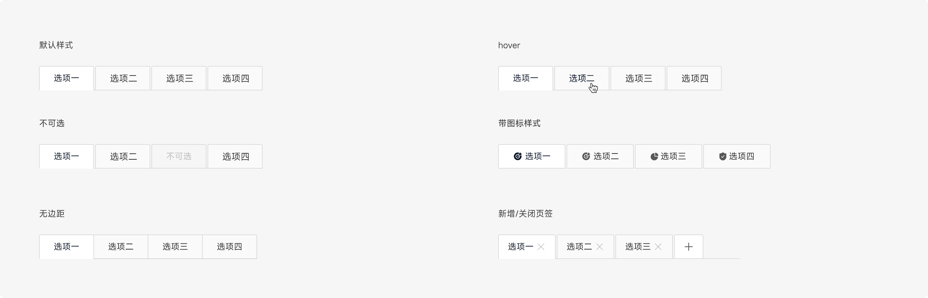 • 在支持定制标签页的场景下,可以通过新增和关闭按钮进行标签页的删减